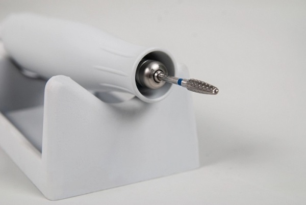 Имеет специальную эргономичную подставку под фрезы на верхней части аппарата; Ручка микромотора сделана в стильной овальной форме и из пластика с шероховатой поверхностью.