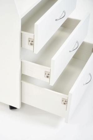 Оснащен тремя выдвижными ящиками и высокой открытой полкой.
