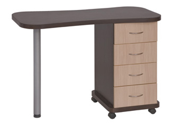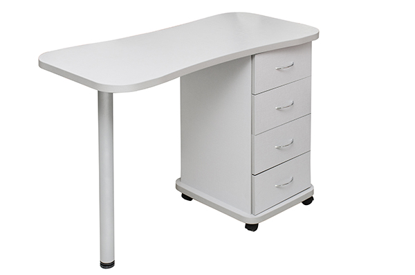 Стильный и эргономичный маникюрный стол ЭСТИ 1 выполнен из облицованного ДСП, обработанного кромкой ПВХ по видимым частям торцов. Изделие оснащено удобной столешницей и комплектуется четырьмя компактными выдвижными ящиками. Крепится на колесики — мастер может легко перемещать стол.