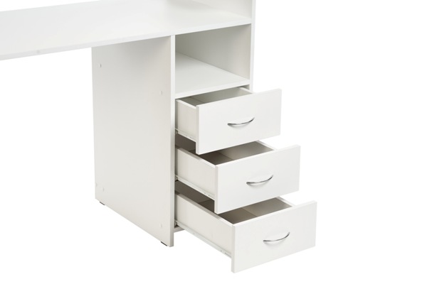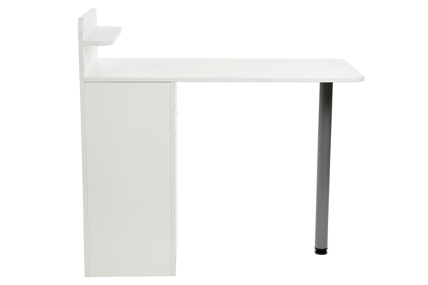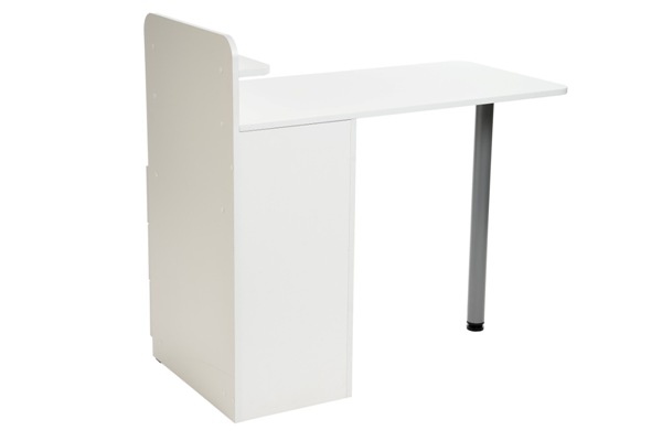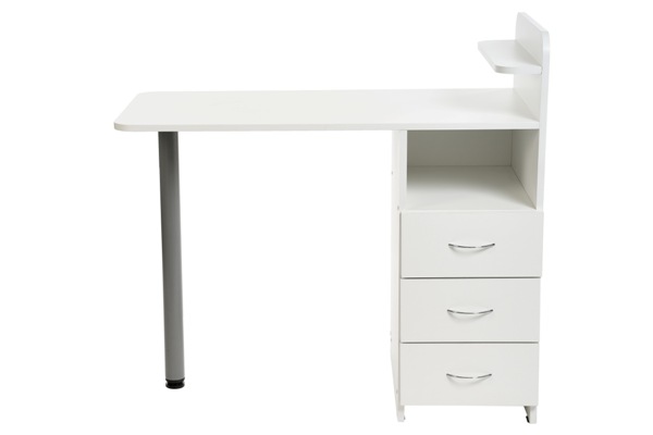 Классический и функциональный маникюрный стол с подставками под лаки. Комплектуется тумбой с тремя удобными ящиками и открытой полкой, что позволит мастеру без труда убирать необходимые инструменты.