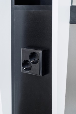Туалет Дуэт 2 Эллипс оборудован розетками и стеклянными полочками. В нижней части расположена подставка для ног.