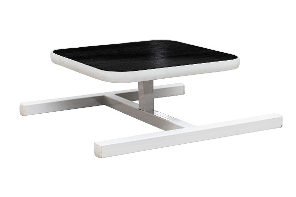 Удобная и эргономичная подставка имеет металлический каркас белого цвета и предназначена для размещения педикюрной ванночки во время проведения процедур.