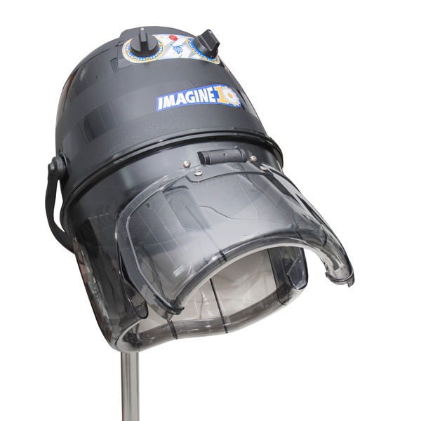 Профессиональный сушуар Imagine от бренда Metalplast изготавливается на металлической стойке с пластиковым пятилучьем и вращающимися колесами для перемещения. Оснащен терморегулятором (от 0 до 70°С), таймером (регулировка от 5 до 60 минут), съемным диффузором из полупрозрачного темного пластика.