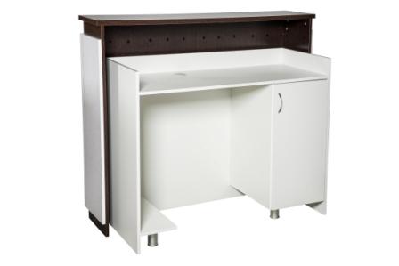 Стильная и эргономичная стойка администратора ДИАЛОГ будет прекрасным украшением любого салона. Материал изделия - ДСП. В комплекте со стойкой идет тумба и удобная полка под системный блок.