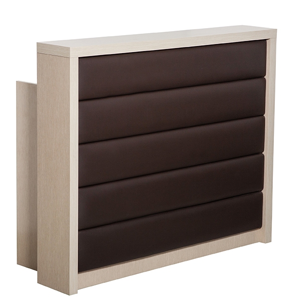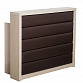 Стойка администратора ФУКСИЯ изготовлена из облицованного ДСП, фасад обтянут искусственной кожей. Изделие оснащено удобной столешницей и тумбой с полками.