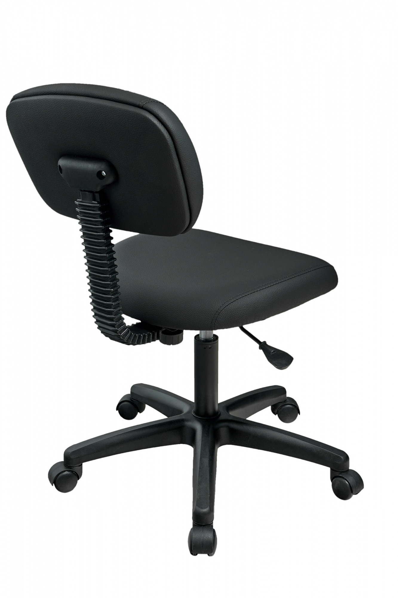 Удобный мягкий стул с пневматической регулировкой высоты уменьшает нагрузку на ноги и спину мастера во время продолжительных процедур.