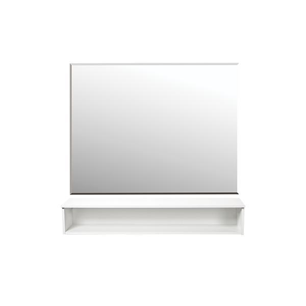 Широкое прямоугольное зеркало визуально расширит пространство вашего салона. Грани зеркального полотна придают уникальность изделию. Под зеркалом удобно расположена открытая полка для хранения инструментов и необходимых аксессуаров.